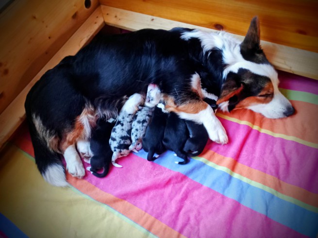 Wir freuen uns so sehr auf diese Anpaarung. Beide Hunde sind von uns selbst gezüchtet und haben mehr als einmal ihre Tauglichkeit als Familienhunde, Seelentröster, Spielgefährten, Kumpels zum Pferdestehelen, Krankenpfleger und Kuschelkumpeld bewiesen.