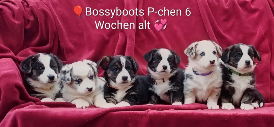 Ihr ward eine tolle Truppe. Alle Welpen unseres des M-Wurfes vom Januar 2024 haben tolle Familien gefunden. Wir werden euch vermissen, von links nach rechts: Flora ( Midnight Lady), Nelly (My Fair Lady), Charly (Must Have), Django (Most Wanted), Ben (Mr. Bojangle) und Blitz (Make My Day)