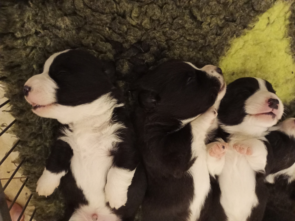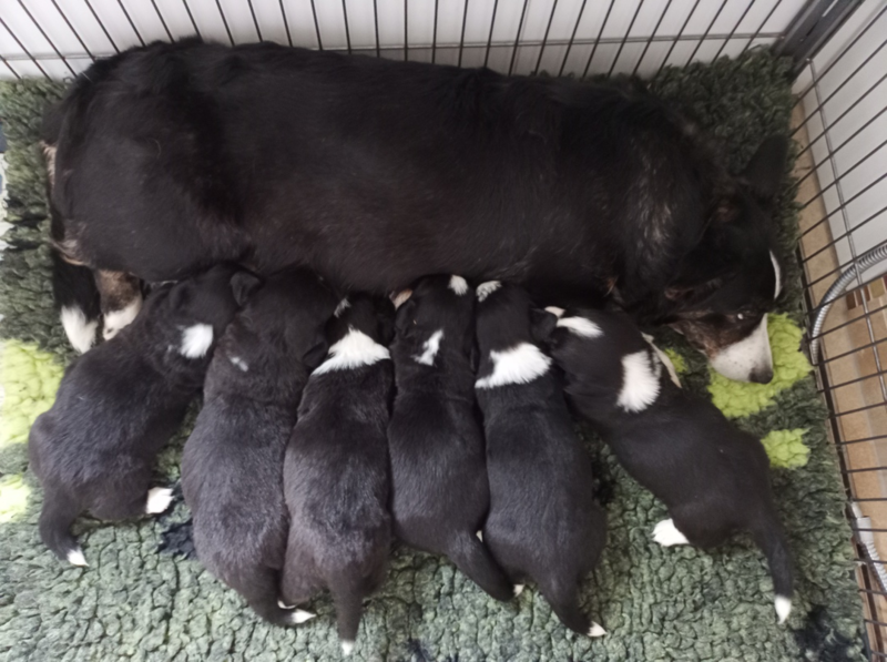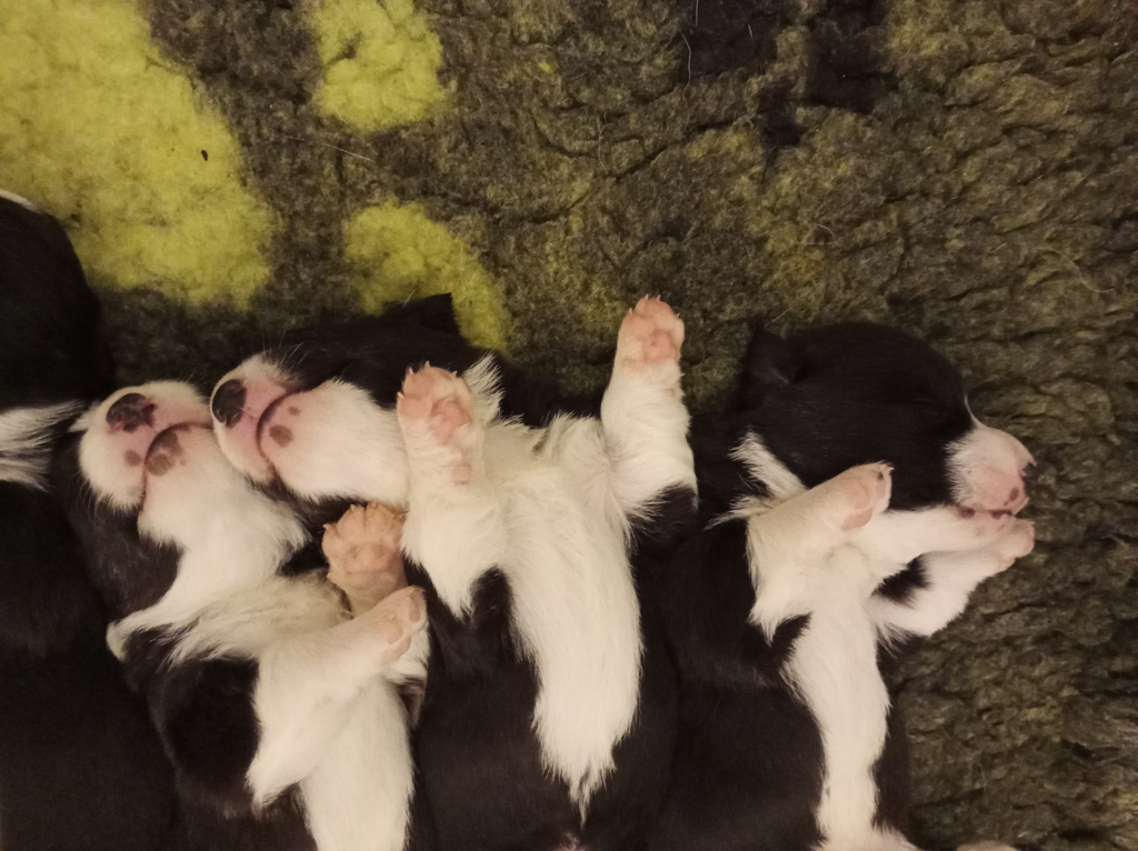 Die kleinen Racker entwickeln sich sehr gut. Sie wachsen wir Unkraut, und haben seit einigen Tage auch schon angefangen sich von Welpenbrei und nicht nur noch von Muttermilch zu ernähren. Seit dem explodieren sie förmlich, denn alle haben einen sehr gesunden Appetit.