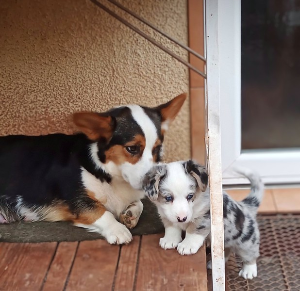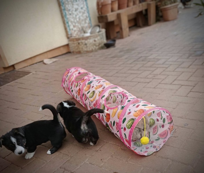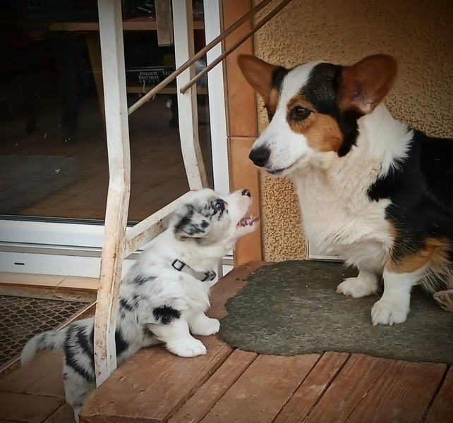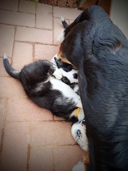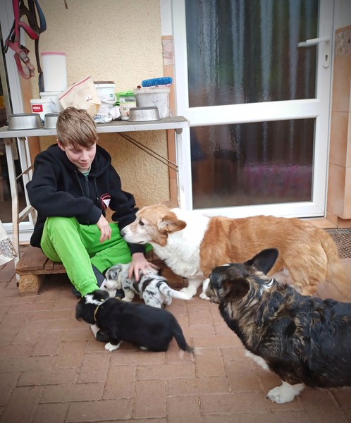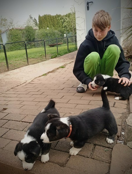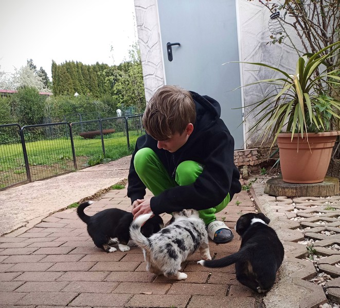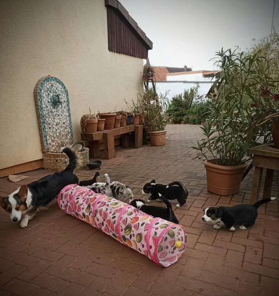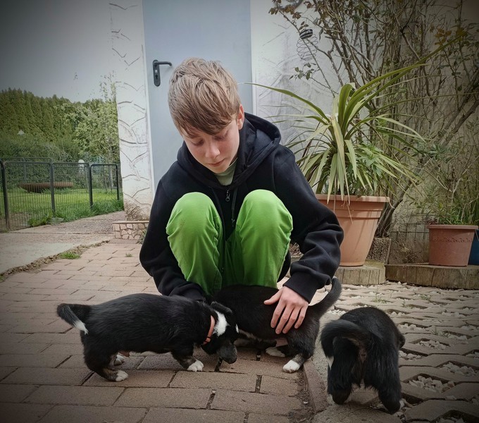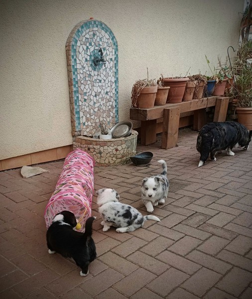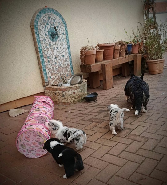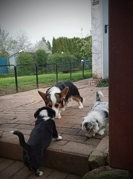 Sie haben natürlich alle einen Bärenhunger nach den Gartenausflügen (3-4 Stück pro Tag) und die Schüsseln werden blankgelekt. Alles in allem haben wir mit ihnen, glaube ich, genau so viel Spaß wie sie mit uns.